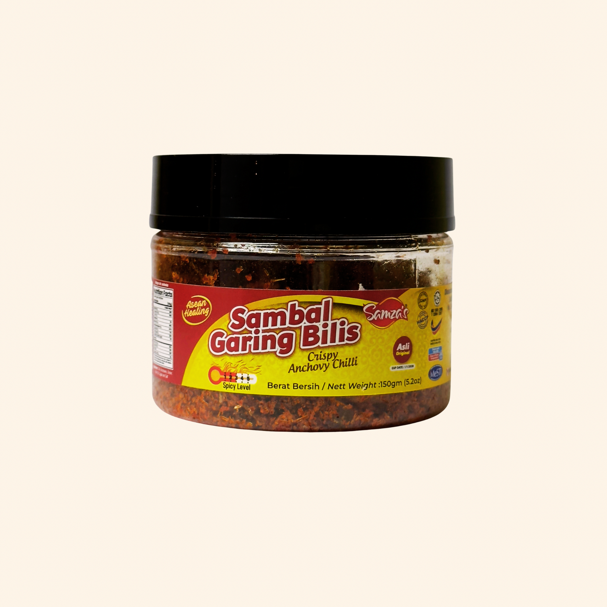 Enjoy authentic Malaysian sambal with this crispy anchovy chili condiment. Sambal Garing Bilis is made with real bilis (anchovies) and aromatic spices for a crunchy, spicy, savory flavor. Perfect as a topping for rice, noodles, eggs, toast, or stir-fries. Ready-to-eat gourmet chili sambal in a convenient 150g jar. Ideal for home cooking, food lovers, and Asian pantry essentials.